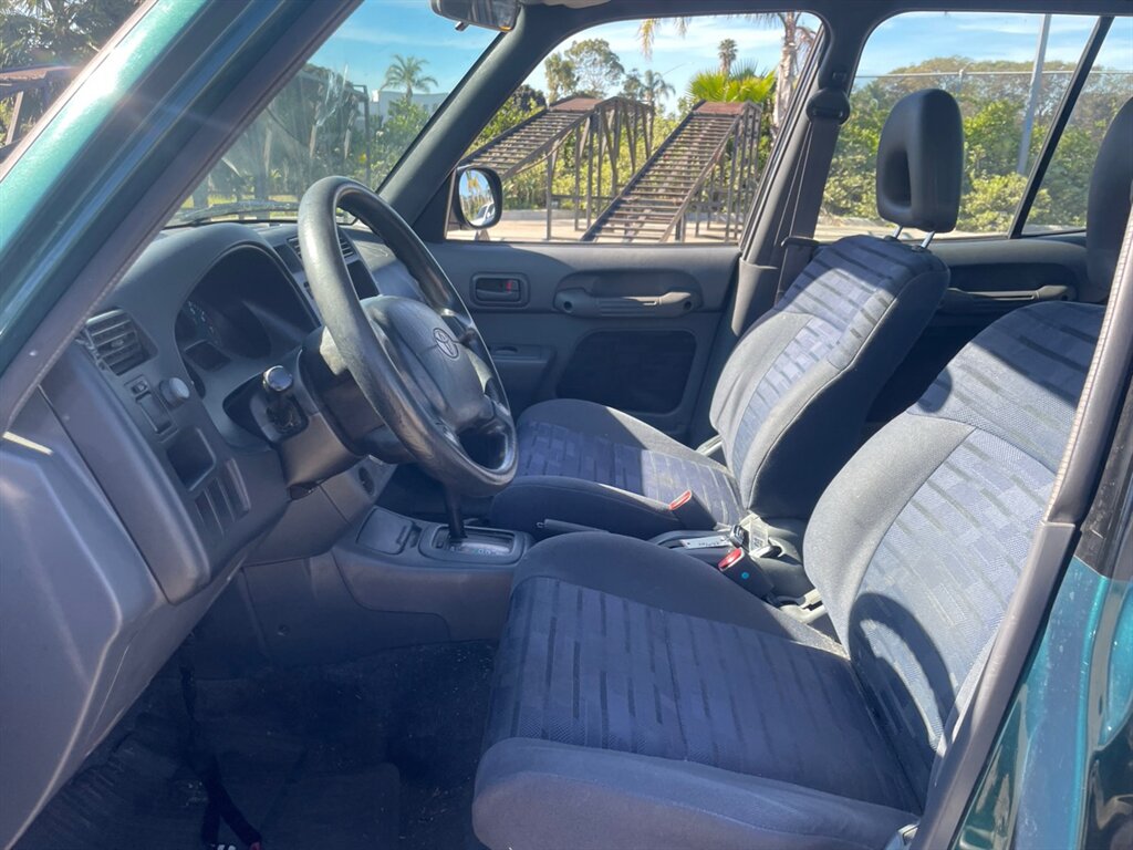 The Dark Green Metallic paintwork gives this RAV4 a timeless and understated look — dark enough to stay practical, with a metallic finish that catches the light attractively. Classic RAV4 styling cues are present and tidy: compact, upright profile for good visibility; a rear-mounted spare tire on the tailgate which adds practical convenience; functional roof rails that make adding crossbars and carriers simple; and body-colored trim accents that present a unified, well-kept appearance. Bumpers, exterior mirrors, and moldings are in line with the era’s rugged-yet-urban design, and the overall finish shows care consistent with the low average mileage.