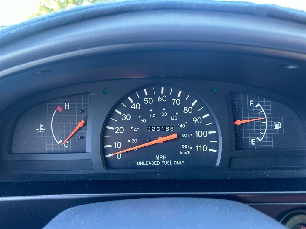 Fuel economy is pragmatic for a late-90s V6 truck: expect about 17 MPG in the city and 21 MPG on the highway, a workable compromise between performance and efficiency for a vehicle of this vintage. This particular Tacoma has below 227,000 miles on the odometer and averages less than 9,000 miles per year, indicating steady, moderate use and careful ownership.