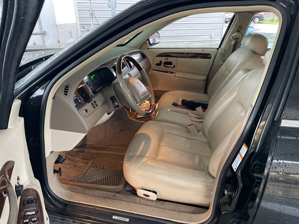This Town Car is in excellent overall condition — mechanically sound, with a clean CARFAX showing no history of major accidents. Cosmetic condition inside and out is impressive for the year: the Black Clearcoat retains its depth, and the Light Parchment leather interior shows well with no significant rips, stains, or signs of abu