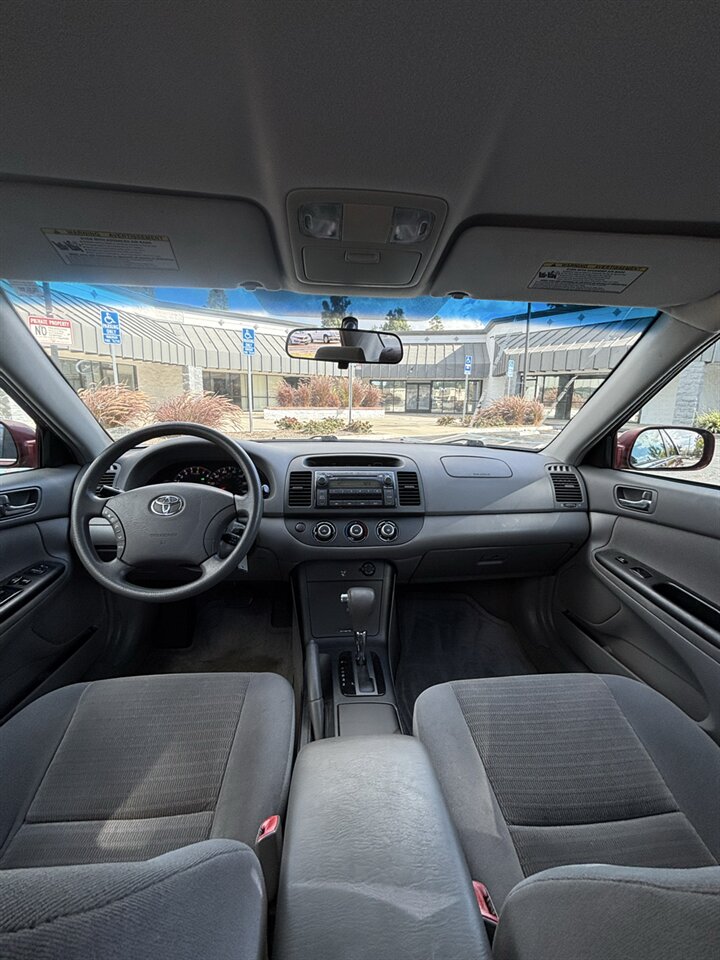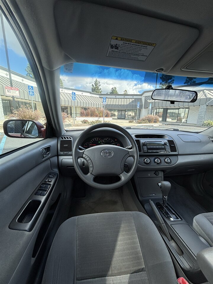 The exterior is finished in a rich Salsa Red Pearl that still presents beautifully. The pearl finish gives depth and a subtle metallic sheen in sunlight, producing a vibrant, head-turning look without being flashy. Panels align well and paint condition is excellent for the model year — gloss, shine, and clear-coat integrity that reflects the careful ownership history. The body and trim are in excellent overall condition with attention to detail evident in the way the doors close, the fit of glass and trim, and the straight bumpers and fenders. Whether cruising the neighborhood or parked in the driveway, the Salsa Red Pearl finish gives this Camry a distinctive, attractive presence.