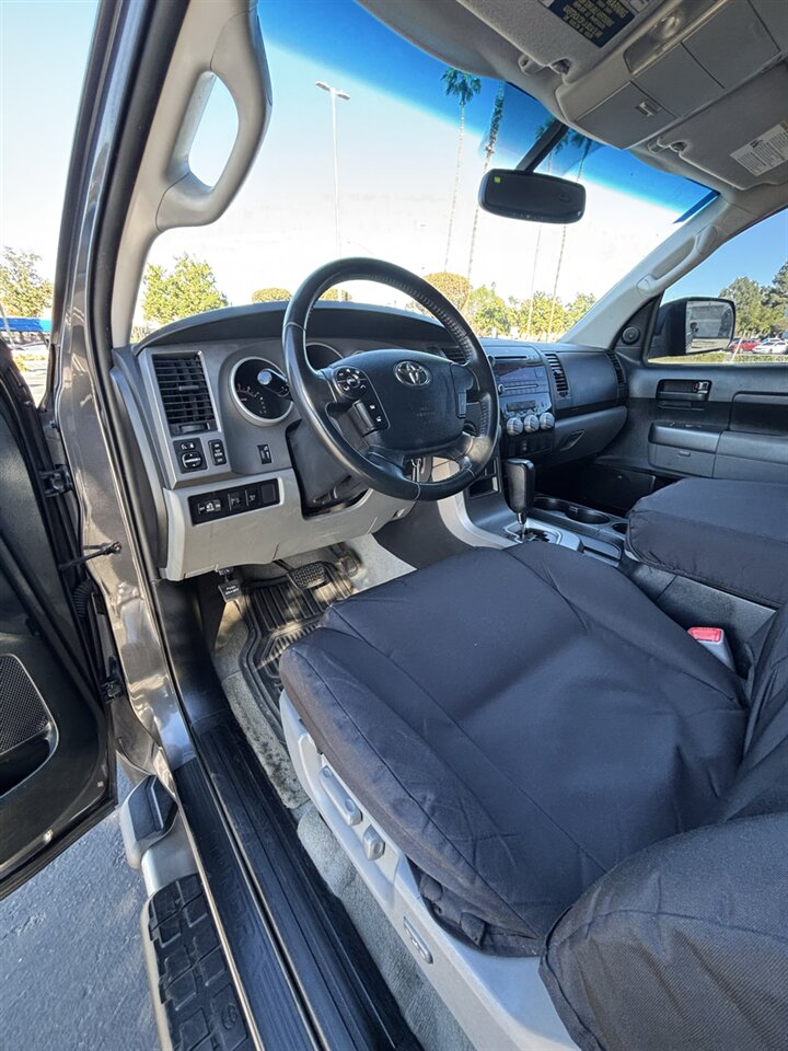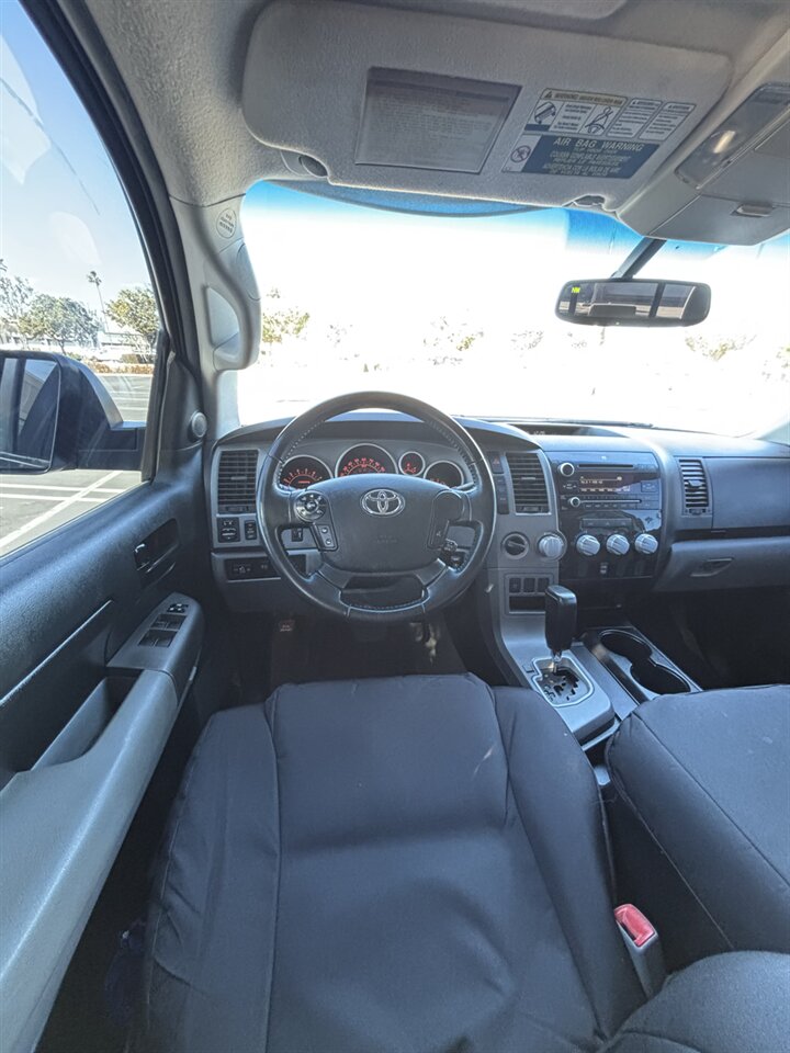 Under the hood lives Toyota’s legendary 5.7L i-Force V8, producing 381 horsepower and 401 lb-ft of torque. That combination delivers strong, confident acceleration and effortless passing power on the highway, while the generous low-end torque makes towing, hauling and off-the-line launches feel effortless. The engine is mated to a smooth-shifting 6-speed automatic transmission that helps balance everyday drivability with solid highway performance. Fuel economy for this example is 13 MPG city and 17 MPG highway — expected for a big V8-powered full-size truck, where power and capability take priority.