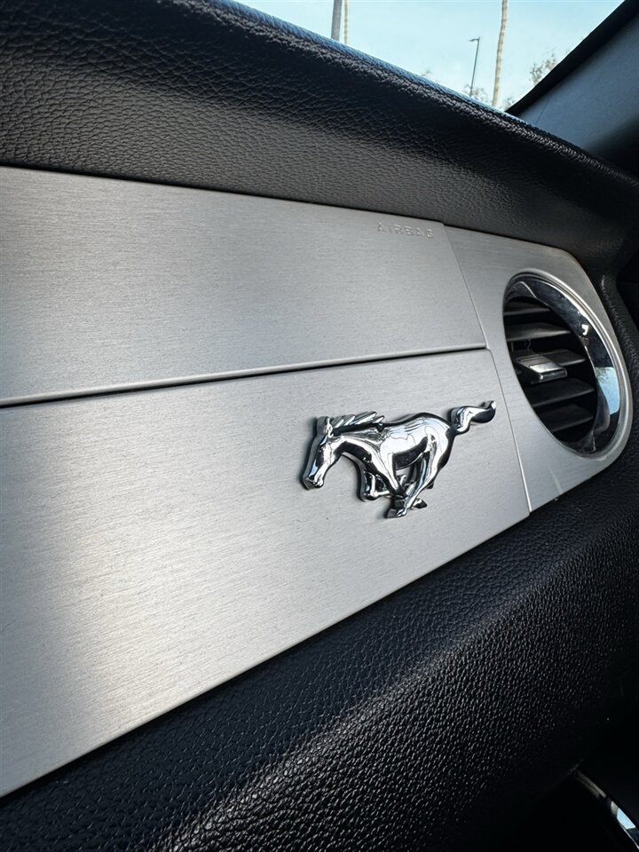This example wears a deep Black exterior that highlights Mustang’s long-hood, short-deck silhouette and sharp character lines. The classic pony grille, muscular fenders, and signature tri-bar taillights give it unmistakable presence. Exterior features from the factory include body-colored mirrors and bumpers, integrated lighting styling, and alloy wheels that complete the sporty appearance. The paint and body are in excellent overall condition, showing the care this car has received over its life.